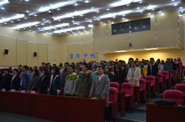 在观看了分团委秘书处、学生会、科协的宣传视频后,主持人宣布开班典礼正式开始,全体起立,奏唱团歌。