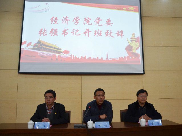 首先,由经济学院党委张强书记开班致辞。张强书记代表学院党委向本次菁英人才学校暨经济学院干训班的举办表示热烈祝贺,并对全体学员提出了三点希望:一、要通过实现中国梦的生动实践,坚持不懈地为人民利益奋斗不息;要有国际视野,全球格局,世界眼光创先争优,砥砺奋进,真抓实干。张书记强调,作为经院人要有“经世济用,经世济民,经世济人”做人态度与治学精神,要为建设“信达天下,贸联四海,融贯铸统,经世济人”的经济学院不断努力与前进。