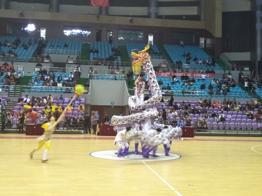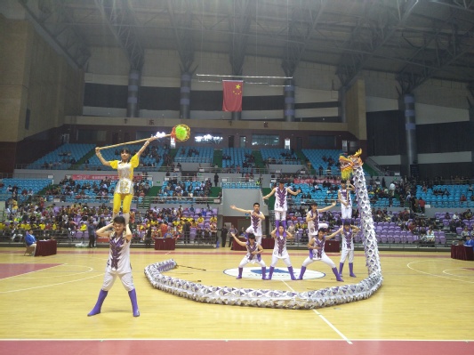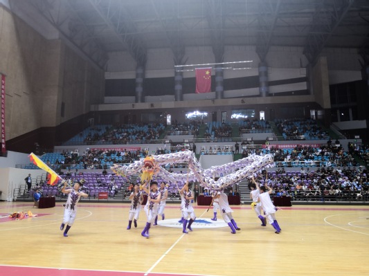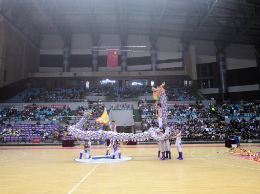 在比赛中,我校龙狮团队员顽强拼搏,奋勇向前,展现了叠罗汉、高塔盘、龙腾九霄等难度动作,精彩的舞龙技艺,巧妙的艺术特效,引得四座叫好,他们坚持不懈和团结协作的精神博得了现场观众的热烈掌声。最终,我校龙狮团获得传统套路、自选套路和团体总分铜奖,“龙头”刘伟涛获本次大赛“优秀运动员”荣誉称号。