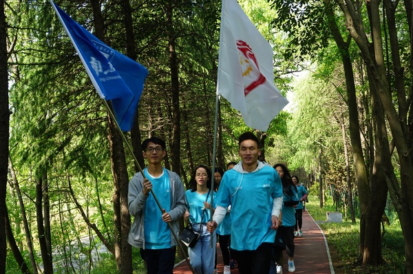 我院负责接力跑的第十二棒——灵谷寺站,全程约2.5公里。灵谷寺周围绿树成荫,同学们一路喊着“我邮威武、经院加油”,顺利抵达下一接力点,传递了经院学子良好的精神面貌以及对学校的美好祝福。