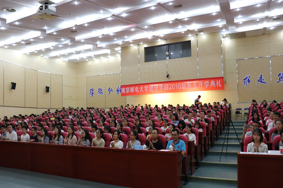 2018年9月7日18:30,经济学院在仙林校区图书馆四楼报告厅隆重举行2018级新生开学典礼。校党委常委、纪委书记李子全教授,校关工委副主任、原经济学院党委书记储成祥教授,经济学院党委张强书记,院长黄宝凤教授,副院长景杰教授,副院长岳中刚教授,副院长王子敏副教授出席大会。典礼由学院党委副书记董军副教授主持。