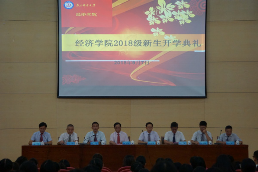 经济学院国际贸易系主任张昌兵教授、金融工程系主任杨小军副教授、新生班主任助理及经济学院2018级240名本科新生和25名研究新生参加典礼。