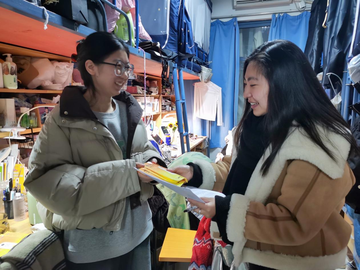 2024年全国硕士研究生招生考试在即,为了帮助学子增强应考信心,12月19日,南京邮电大学经济学院党委书记董军、党委副书记吴迪、分团委书记尤波、2020级辅导员周洪山、本科生第四党支部副书记王依婷前往考研自习室、学生宿舍开展“寒冬送暖,研途相伴”温暖活动,为学子增添一份冬日的温暖。