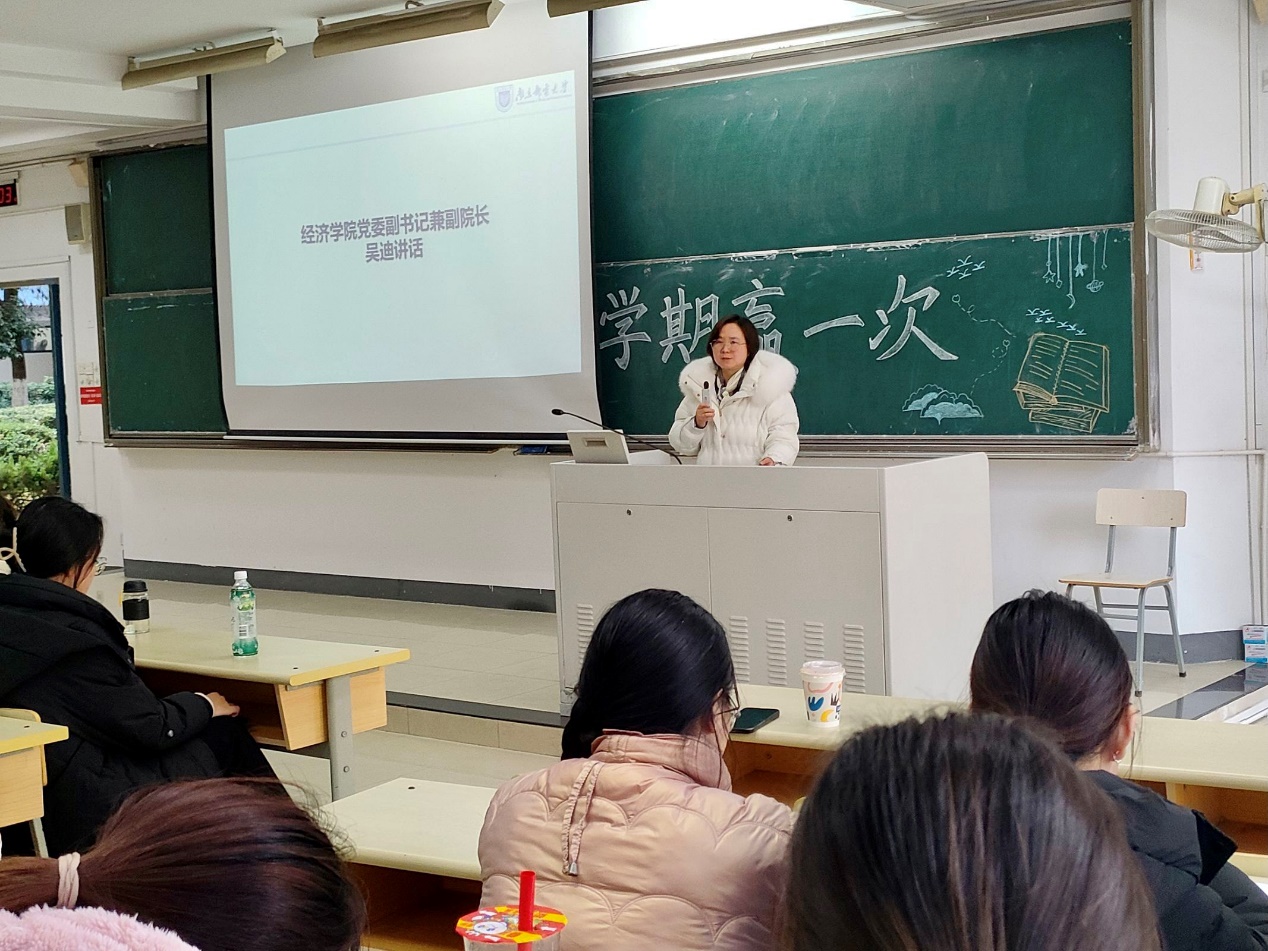 为推进新学期年级工作开展,帮助2022级同学进一步做好大学规划,3月7日下午,经济学院2022级召开新学期第一次年级大会。学院党委副书记兼副院长吴迪应邀出席,年级大会由2022级辅导员储宜旭主持,2022级全体同学参会。