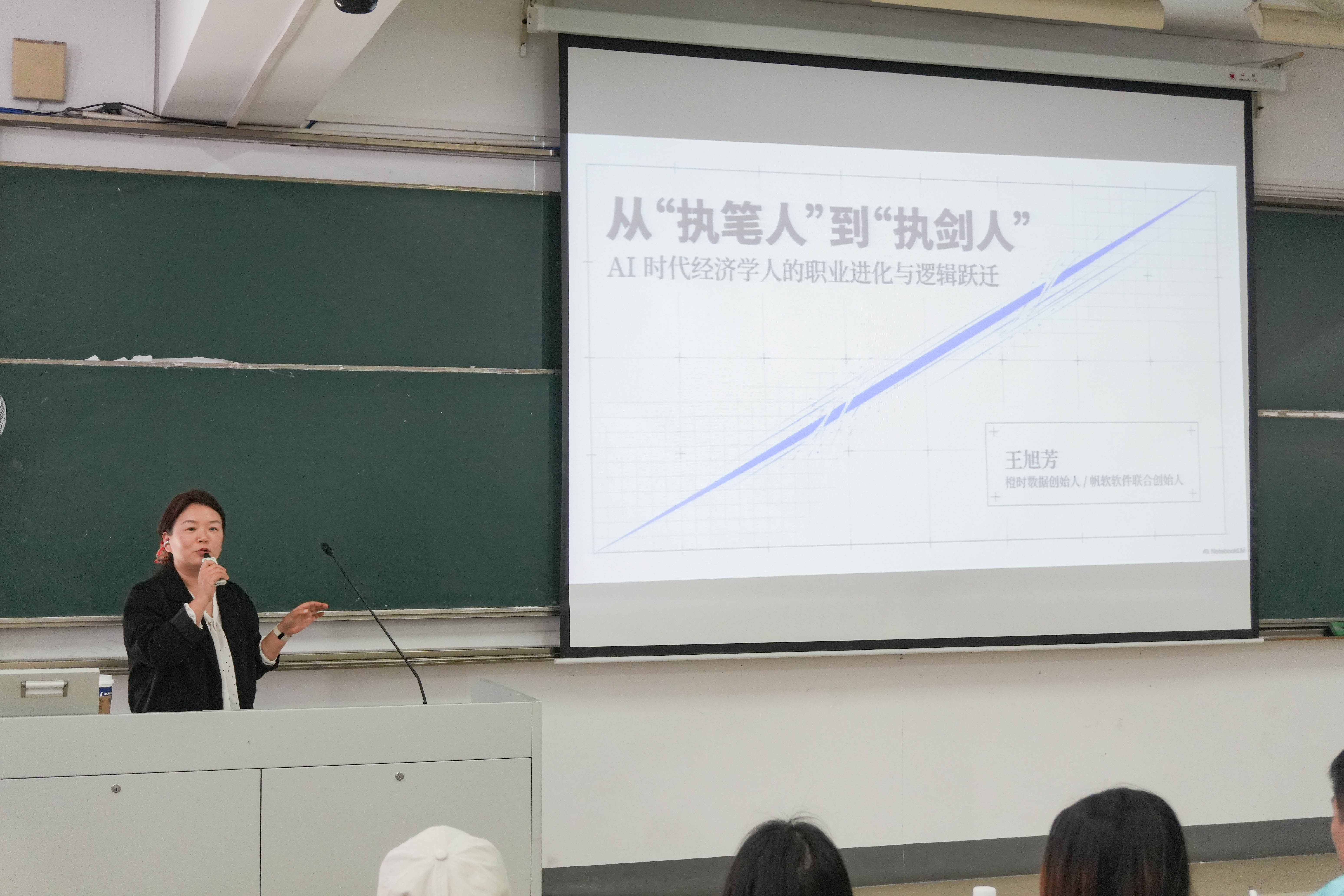 王旭芳校友紧扣时代脉搏,深刻剖析了从“执笔人”到“执剑人”的职业范式转变。她指出,传统经济学人所从事的数据录入、基础统计、报表填制等重复性“执笔式”工作,正逐步被AI自动化工具替代,单一执行类岗位的价值日渐式微;而新时代的经济学人,应蜕变为驾驭工具、定义问题、主导决策的“执剑人”,突破被动执行的局限,成长为具备分析能力、决策能力和统筹能力的高层次人才。王旭芳校友结合自身跨界发展的实战经历,从目标拆解、快速学习、AI工具驾驭、资源整合四个维度,系统阐述了能力跃迁的关键路径,分享了高效运用AI的实操方法,也提醒同学们保持理性判断,避免盲目依赖算法,以跨界学习力应对行业瞬息万变的挑战。