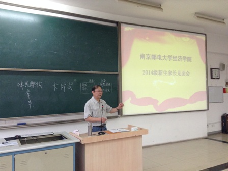 南京邮电大学经济学院于2014年9月2日下午,教3-312举行了2014级新生家长座谈会。出席本次座谈会的有院关工委委员郑会颂教授,党委副书记董军老师以及2014级新生辅导员吴波老师。座谈会由吴波老师主持。