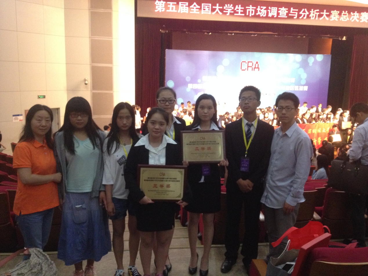 我院继2014年成功组队参赛后,今年有两支代表队参加全国总决赛,经过学生与指导老师的共同努力,最终获得全国大学生市场调查与分析大赛总决赛二等奖、三等奖各一项。通过参赛,学生们巩固了统计调查的基本技能,提升了把书本知识转化为解决实际问题的能力。