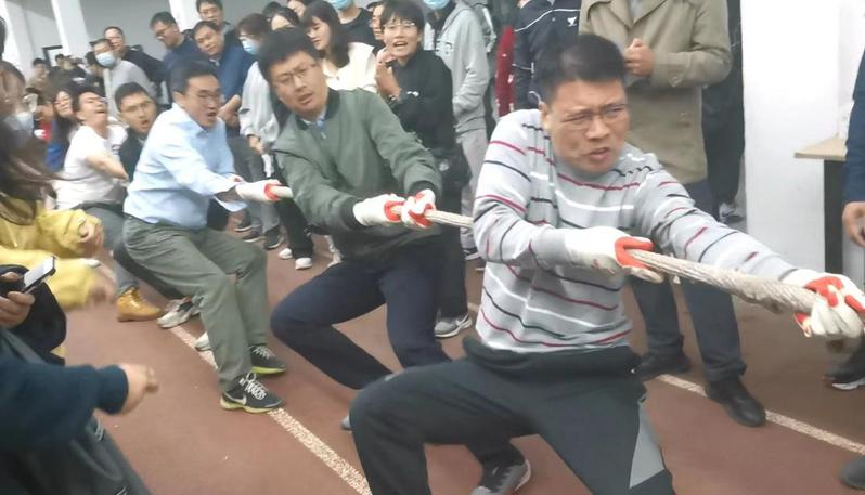 本次趣味健身活动共设4个团体项目。在毛毛虫竞速走项目中,老师们齐心协力,步调一致,迈着整齐的步伐朝着终点奔去;在集体跳绳项目中,随着跳绳飞舞,老师们依次出列,争分夺秒,循环接替,配合默契;在拔河比赛中,老师们倾尽全力,敢于拼搏争先,用行动诠释了“团结就是力量”,连胜两局。最后的运转乾坤项目中,老师们在滂沱大雨中精诚协作,共同扛起硕大的气球在风雨中往终点奋力跑去。老师们在各个项目比赛场地上,留下许多欢声笑语和美好的瞬间。