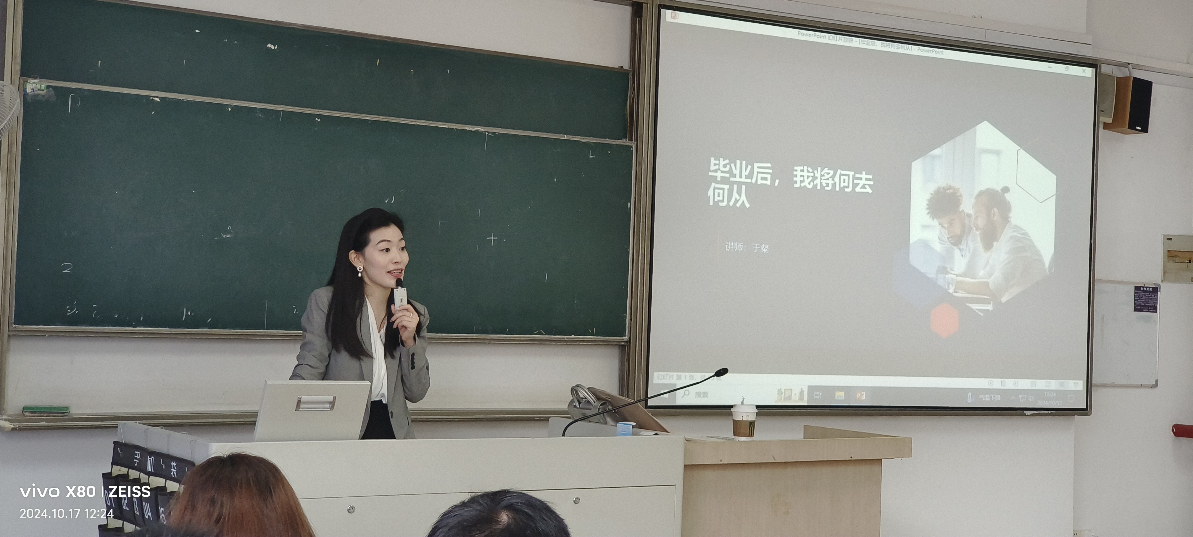 2024年10月17日中午,南京邮电大学第一百九十一期大学生菁英人才学校暨经济学院骨干培训班第八次授课于教2-405顺利举行。本次课程的主讲人为宁波银行南京分行私银部经理于粲,具体围绕《毕业后,我将何去何从》这一主题展开授课。