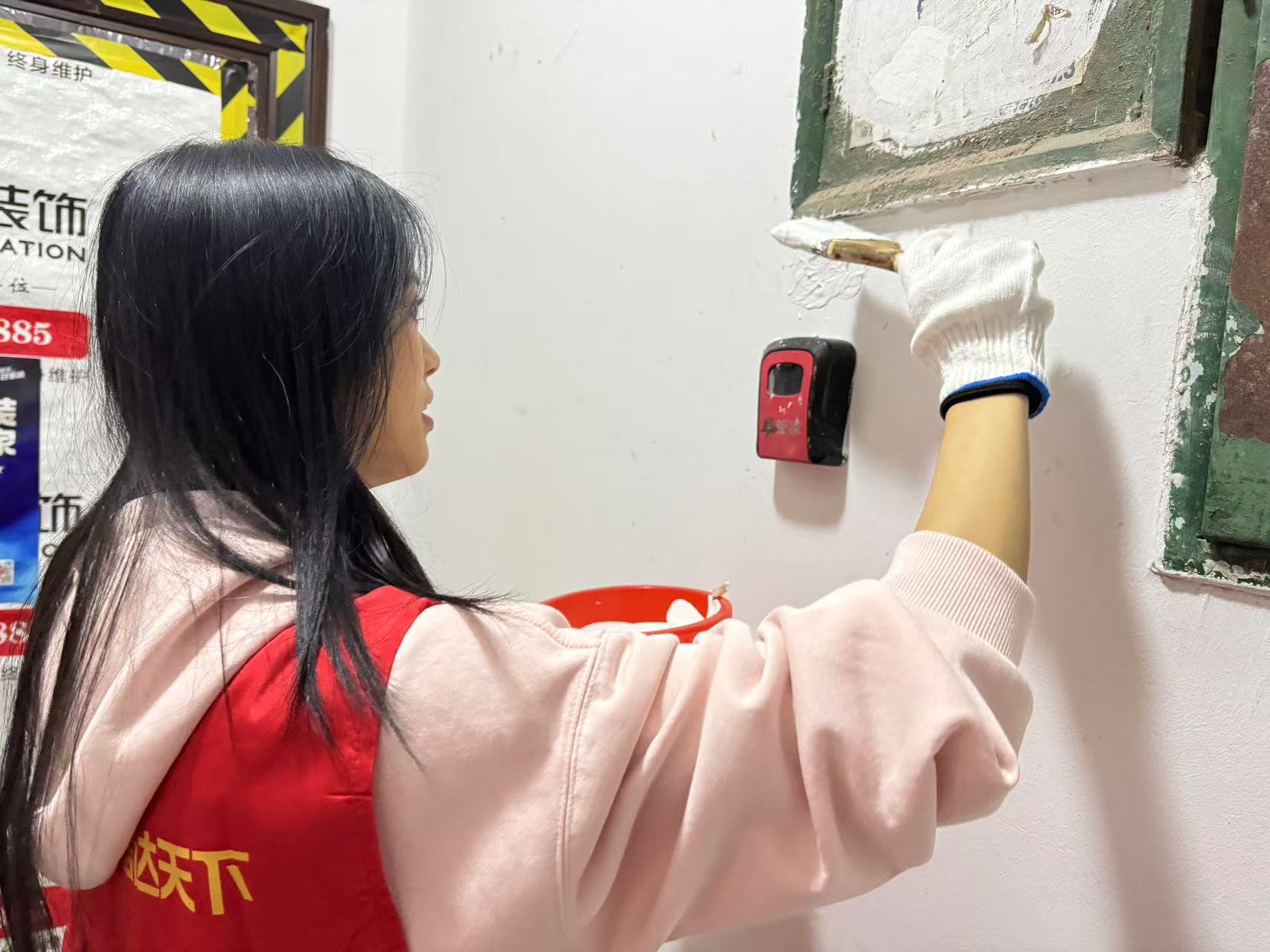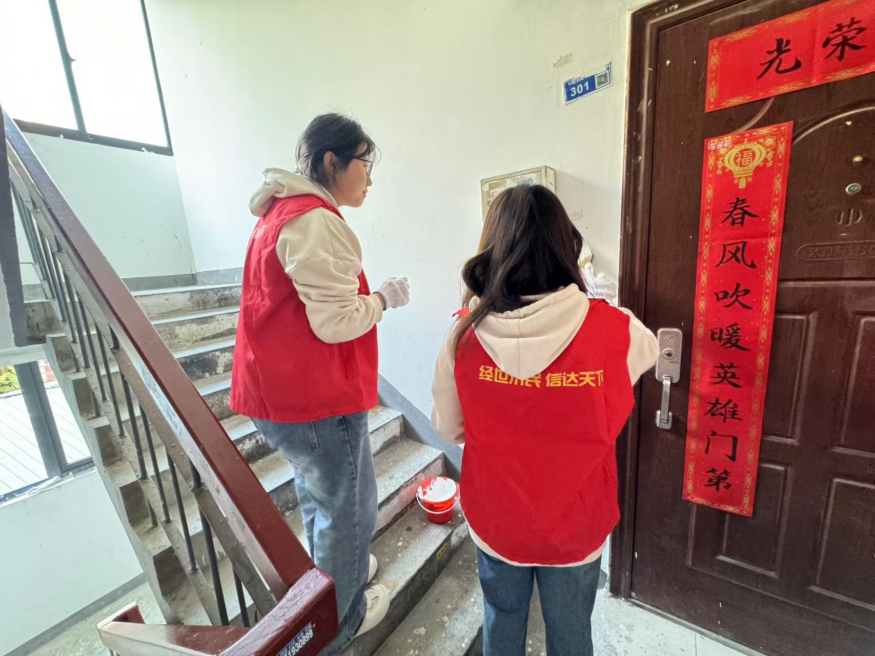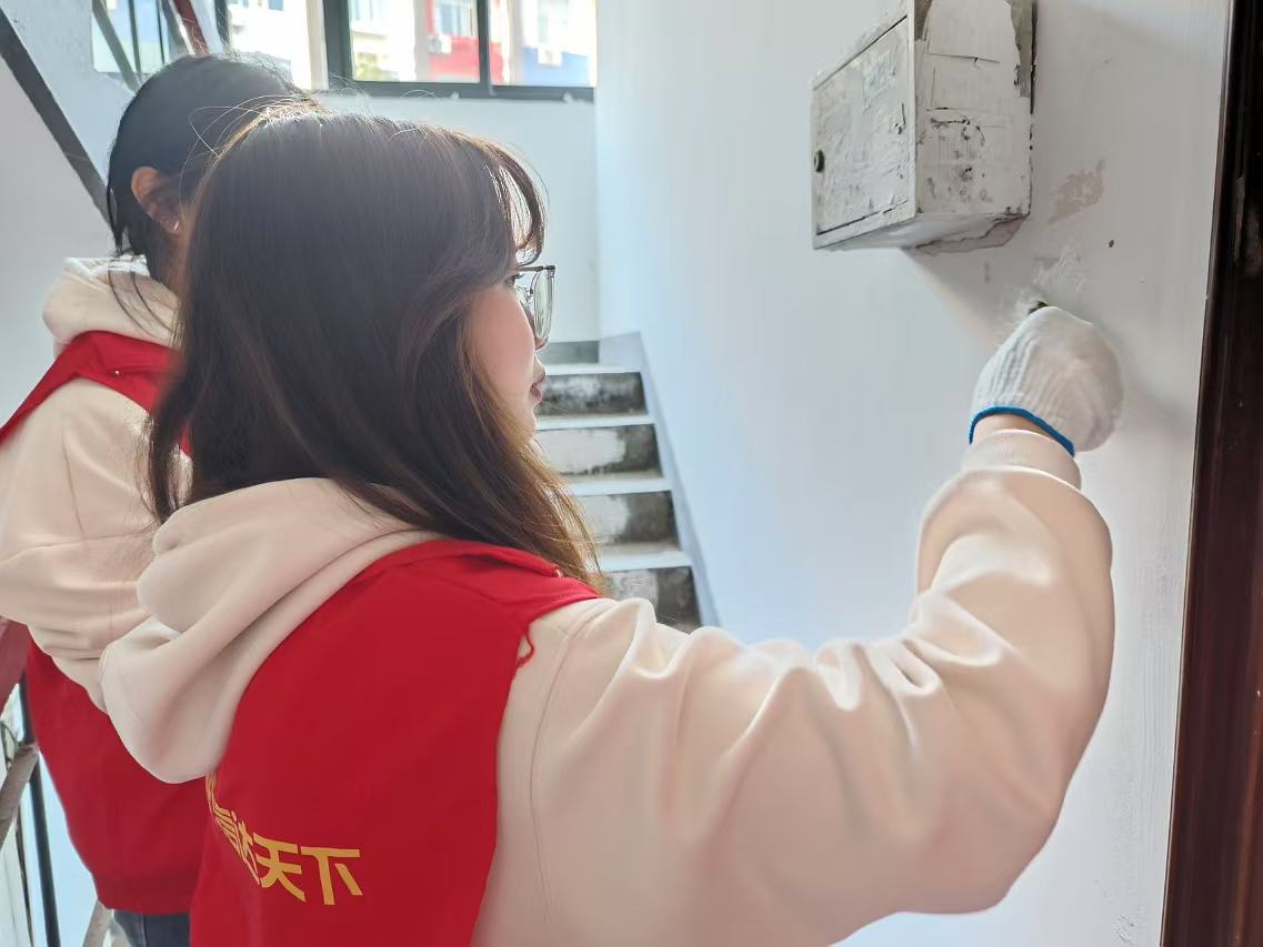 接下来全体人员开展清理楼道广告的志愿服务,大家认真听取社区工作人员的经验,拿取社区提供的相关工具,积极分组合作。小广告的泛滥不仅影响市容市貌,还传播虚假和违法信息,损害社会秩序和公共利益。为了维护社区整洁安全的生活环境,全体走进小区居民楼,始终保持对志愿服务的热爱,踏踏实实为社区居民服务,用慧眼及时发现藏匿的广告并耐心细致地铲除。大家坚持团结协作的集体精神,面对困难集思广益,层层递进。大家在志愿服务中小心谨慎,拒绝大声喧哗,努力做温暖周到的志愿者。工作完毕后及时清理遗留的垃圾,回到社区中心归还工具,及时汇报工作情况,获得社区工作人员的一致赞誉。