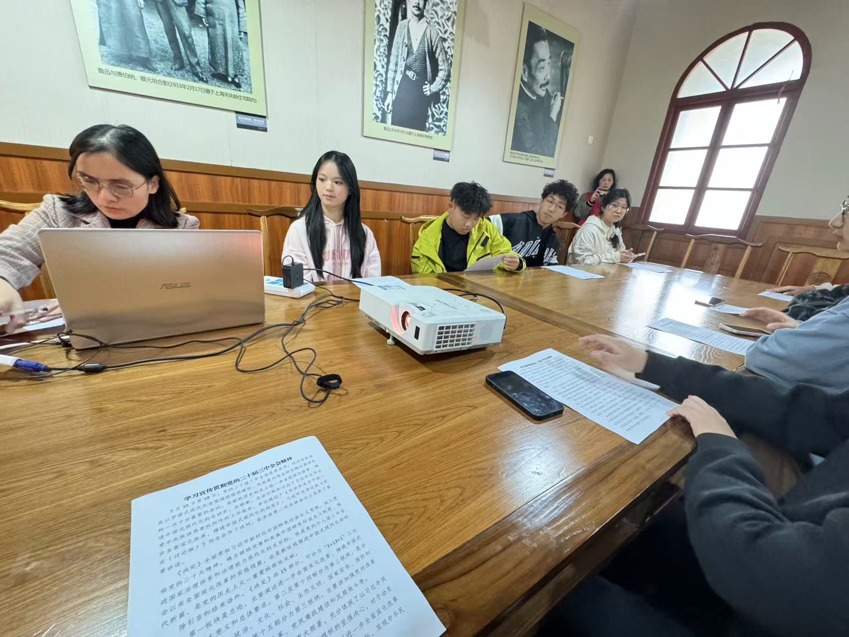 随后,董书记带领同学们开展党的二十届三中全会内容学习,同学们认真听讲,深刻学习思考。董书记还介绍了鲁迅园社区的活动历程,丰富多彩的文化活动,如古筝公益班,书法展览,品茶兴趣课等等,充分展现社区的温暖与人情。