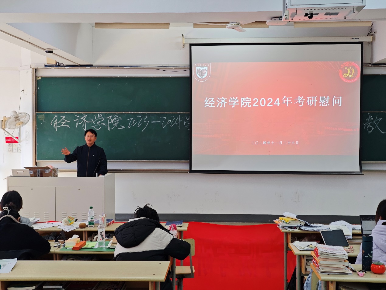 为帮助学院考研学子坚定考研信心,缓解备考压力,经济学院于2024年11月26日开展了2024年考研慰问活动。经济学院党委书记董军、党委副书记兼副院长吴迪、2021级本科生辅导员王珏参与本次活动。