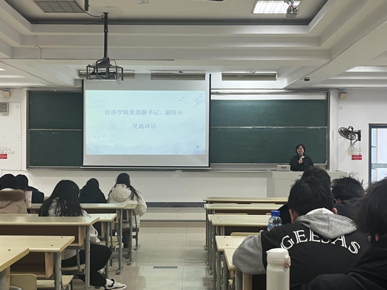 为帮助大四学生尽快调整状态,提前做好规划,经济学院2021级于2024年12月24日在教3-101召开了大四上第三次年级大会。经济学院党委副书记兼副院长吴迪出席本次会议,会议由辅导员王珏主持。