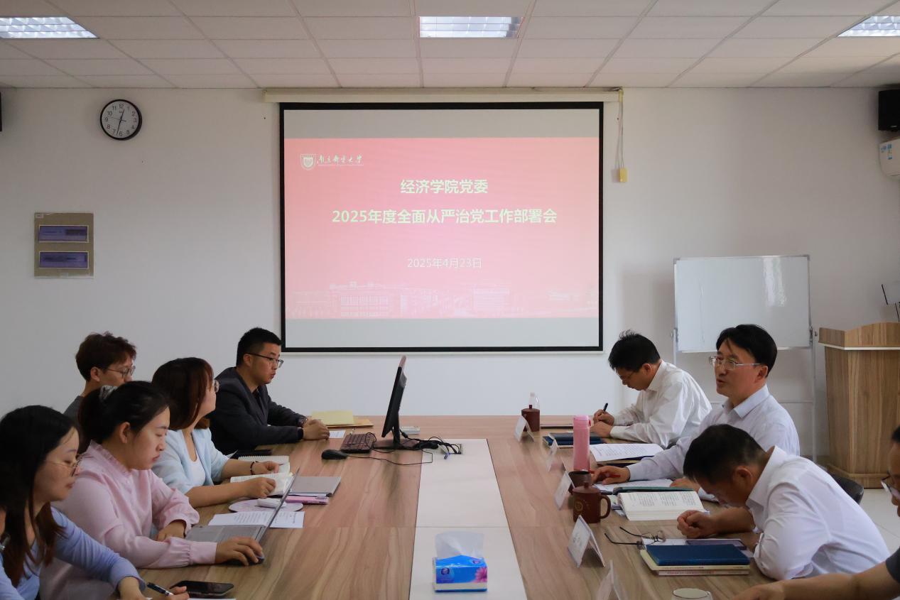 为深入学习贯彻习近平新时代中国特色社会主义思想、党的二十届三中全会精神和二十届中央纪委四次全会精神,全面传达落实学校党委2025年全面从严治党工作要求,2025年4月23日中午,经济学院党委在文科楼529会议室召开2025年度全面从严治党工作部署会。学院党委委员,党风联络员,特邀监察员,各党支部支部书记、副书记、纪检委员参加会议,会议由学院党委书记董军主持。