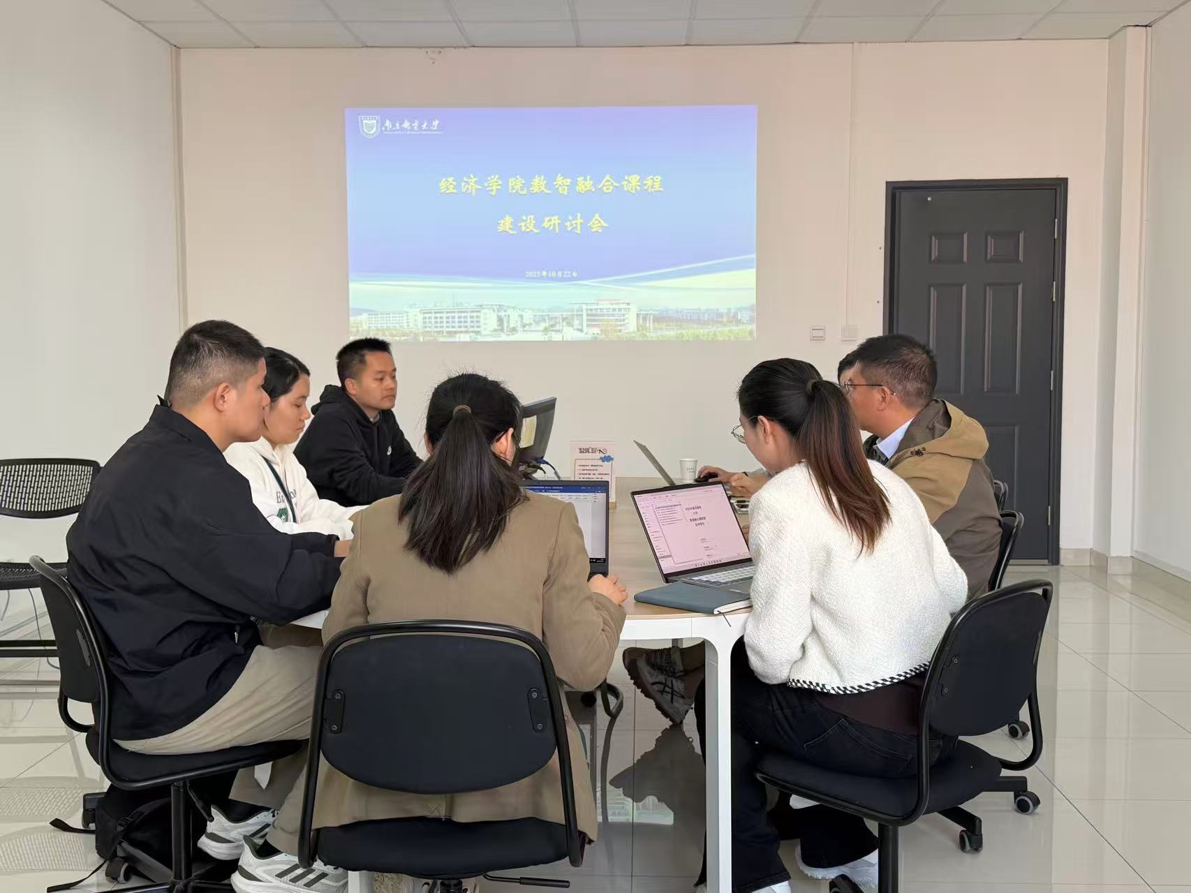 为贯彻落实学校智慧教育行动年任务,提升“数智融合课程”建设质量,10月22日上午,经济学院在文科楼522会议室召开数智融合课程建设研讨会。学院校级数智融合课程建设项目负责人及团队成员、智慧树平台课程建设技术人员参加会议,会议由副院长杜运伟主持。
